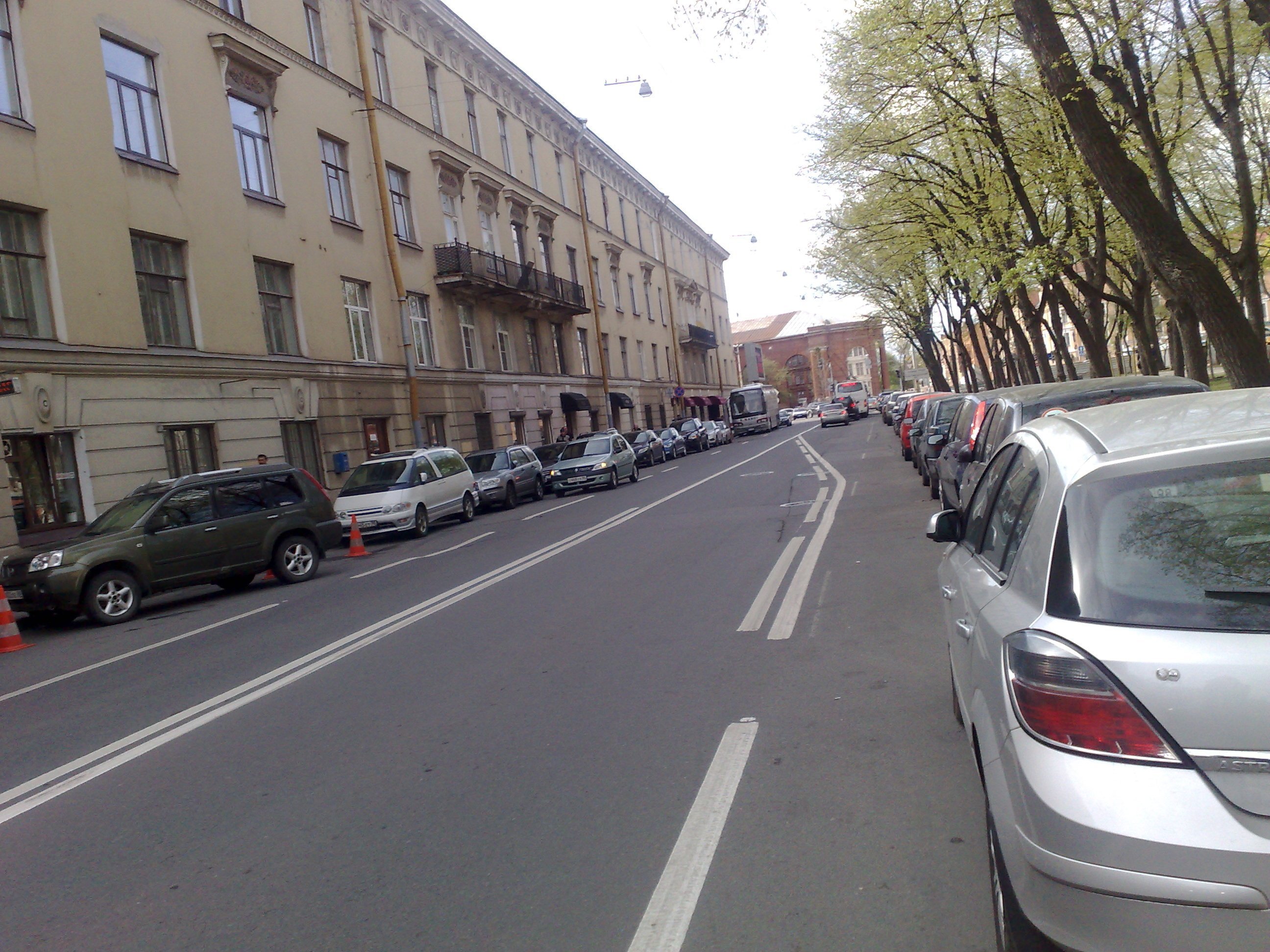 есть там перекресток, но разметка эта от прерывистой линии начинается. Поэтому, пока нашли смысл в ней только один: так как до сплошной линии, от запаркованной машины должно быть расстояние не менее 3-х метров, это будет минус 4 парковочных места... Пока, никаких других знаков, запрещающую парковку на этой стороне улицы - нет.
