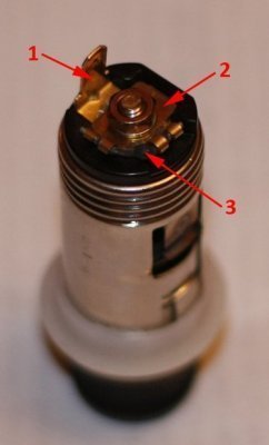Помогите, пожалуйста, разобраться с проблемой. Недавно стал счастливым обладателем Mitsubishi-lancer 2005г. В процессе обследования обнаружил, что не работает прикуриватель. После непродолжительного поиска проблемы обнаружил следующее. На прикуривателе один из контактов для подключения питания, сделан интересным способом. Сам контакт (1) находится в пластмассовом гнезде. На него установлена диэлектрическая прокладка. Сверху на прокладку установлен другой контакт (2), который непосредственно соединяется с нагревательным элементом. Контакт 1 и 2 соединены друг с другом при помощи неизвестного элемента (3) (возможно это плавкий предохранитель). Этот элемент выглядит как кусок изолированной проволоки. В данный момент внутри изоляции нет контакта (явно виден разрыв внутреннего проводящего провода, но изоляция осталась целой). Подскажите что это за элемент? Как его можно заменить? Возможно ли контакты 1 и 2 соединить напрямую шунтом? Заранее благодарю за помощь.