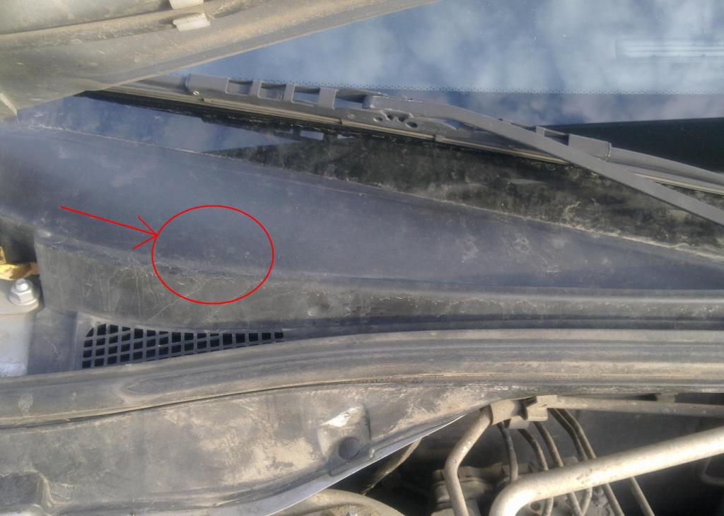 Всех приветствую! Коллеги, как думаете, что это может быть? Со стороны пассажира в салон проникает вода, где-то течет внизу лобового стекла или воздухозаборной решетки. Точно не испаритель кондиционера.ю проверял, после дождя всегда сырость или мойки. Фотку приложу. Стекло переклеивали осенью прошлого года в Автомире, думаю в этом и причина. Хотя непонятно. Посмотрите на фотке. Так и должно быть, что кроме пластмассовой решетки, которая у меня не приклеена (а как у вас?), то есть вода там свободно может протекать, больше ничего нет перед воздухозаборным отверстием (стрелочкой отмечено). Там и течет наверное.