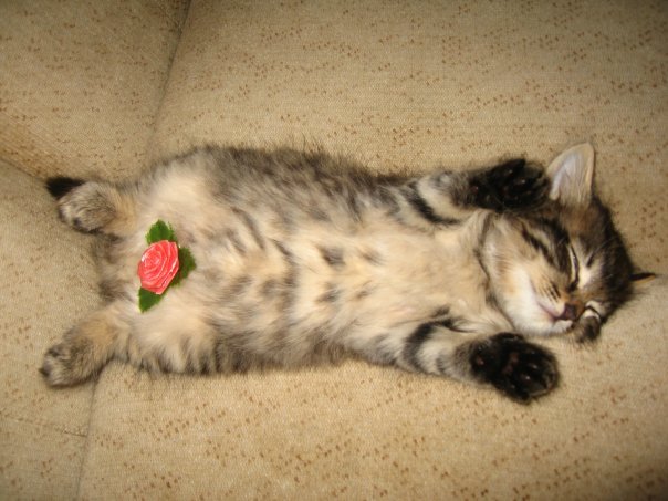 Вообще я его на Кондратьевском рынке покупала как гладкошерстного котенка неизвестной породы. По этому поводу у нас в семье до сих пор на до мной шутят... А мои два усатых паразита: кот и кошка и когтеточку и диван... и кресло... и обои... и дверные косяки....