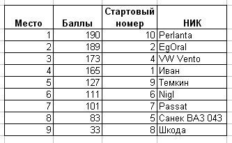 EgOrAl Опубликовано 28 мая, 2007 Опубликовано 28 мая, 2007 Итоговые результаты: Эх, всего один балл! :) Респект победителям: мы шли очень быстро....вы видать ваще летчики вернее летчица! :) Организаторам просто РЕСПЕКТИЩЕ! Все супер! Огромное спасибо всем, кто тусовался в закрытом форуме!